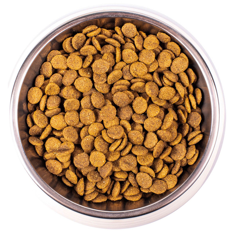 Курица (26% обезвоженного мяса, 10% свежего), рис, животный жир (куриный жир, очищенный до 99,5%), гидролизованный животный белок (печень), сушеный свекольный жом, кукурузный глютен, сушеные яйца (2%), рыба (сушеный лосось ), рыбий жир 2% (масло лосося очищенное до 99,5%), минералы, пивные дрожжи, гороховое волокно, дрожжевые продукты (манноолигосахариды MOS 1%), ксилоолигосахариды (XOS 0,3%), продукты переработки травы (шиповник 0,1%), юкка шидигера (0,1%).