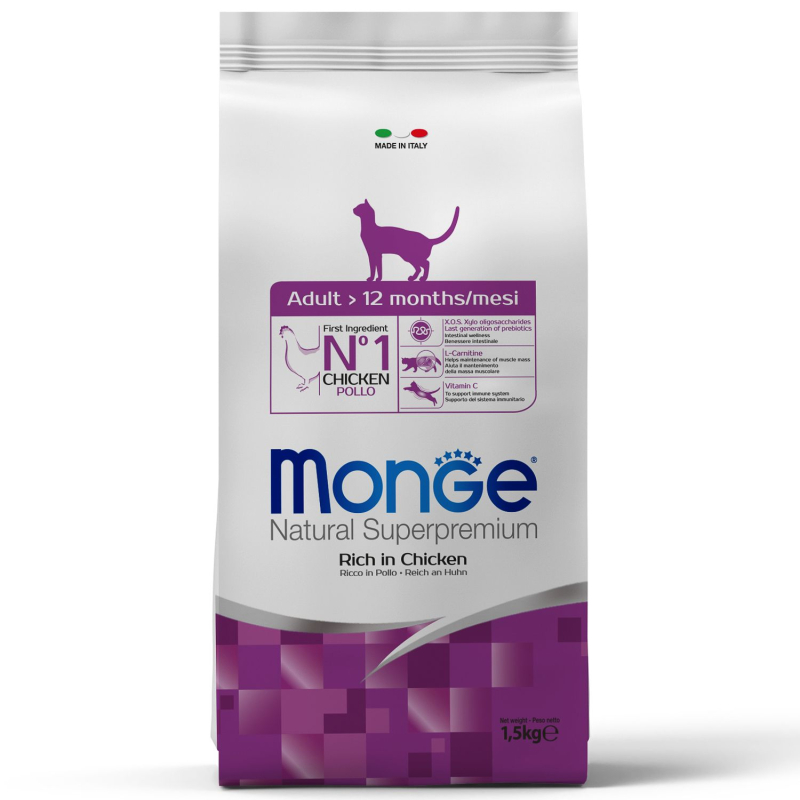 "Monge (Монж) Cat Daily Line сухой корм из мяса курицы для взрослых кошек и котов 1,5 кг.