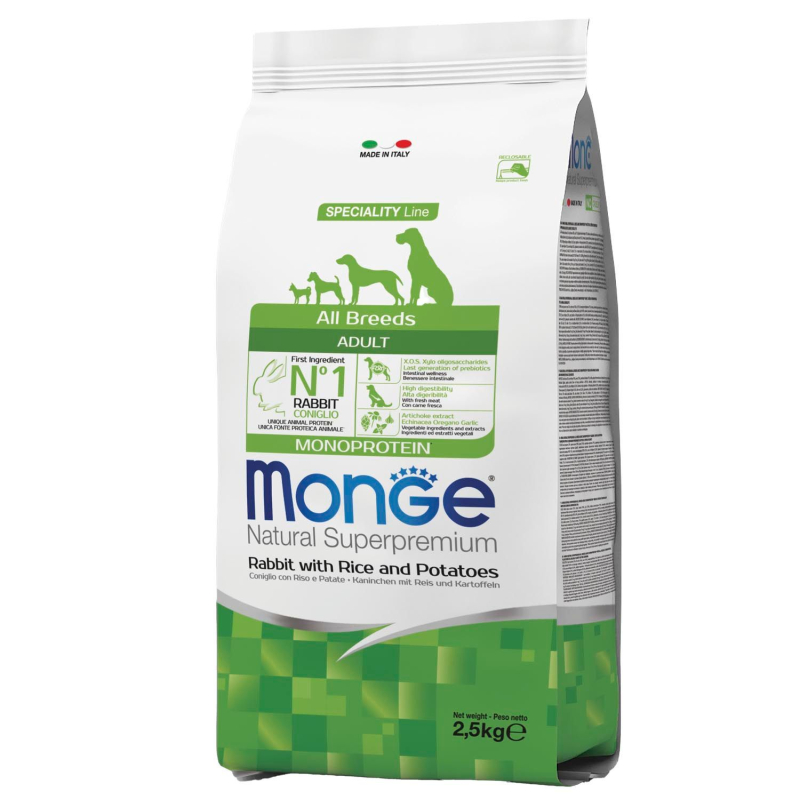 Monge (Монж) Dog Speciality Line Monoprotein сухой корм из мяса кролика с рисом для взрослых собак всех пород 2,5 кг.