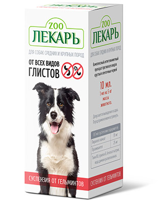 Zooлекарь Суспензия от гельминтов для собак средних и крупных пород, 10мл