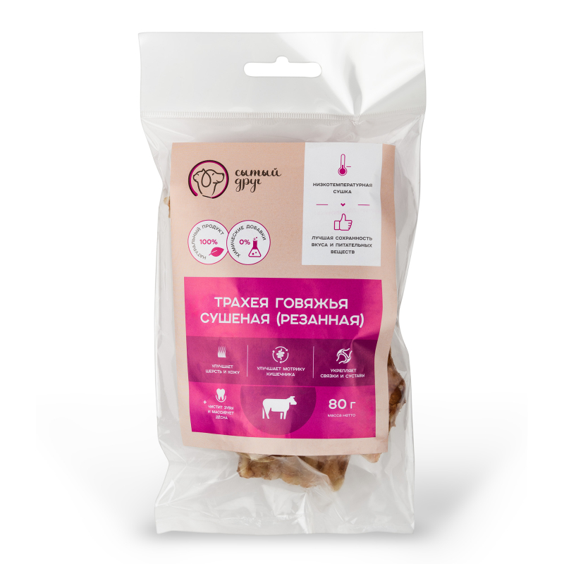 Трахея говяжья сушёная, нарезанная полосками натуральная, 80гр