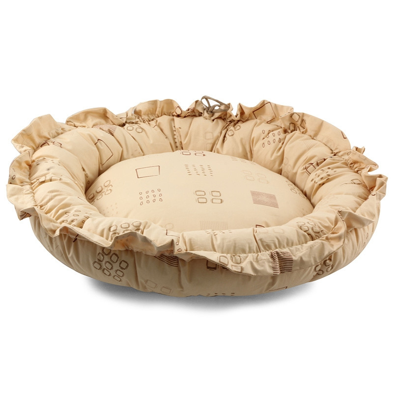 Мягкая подушка-лежанка для маленьких кошек. Удобные габариты позволяют разместить ее где угодно, идеально впишется в любой интерьер, а для создания вертикального борта достаточно потянуть за шнурок.