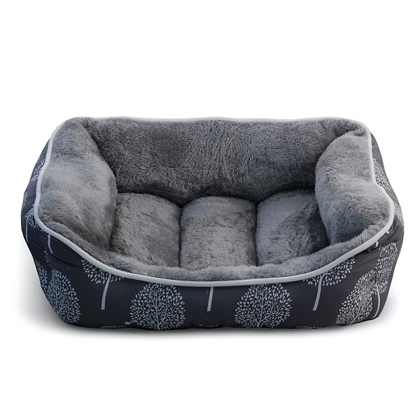 Лежанка с оригинальной окантовкой и удобным низким "входом" имеет также мягкое плюшевое спальное место и практичное противоскользящее дно.