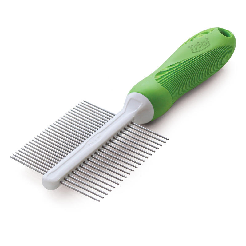 Такая расческа - это не только полезный, но и максимально удобный аксессуар для ухода за животными. Продуманная до мелочей, она входит в линейку премиального груминга и идеально подходит для удаления уже выпавших волос и уменьшения линьки. Прочные двусторонние металлические зубцы длиной 28 мм с закругленными концами бережно воздействуют на кожу животного и создают дополнительный массажный эффект. А благодаря эргономичной прорезиненной ручке изделие удобно лежит в руке. Размер изделия: 204*68*26мм. Количество зубцов: 20/29. Изделие упаковано в блистер (ручка открыта).