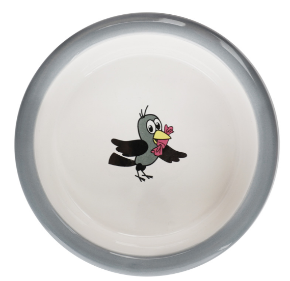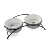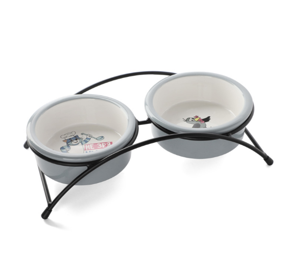 Этот функциональный комплект из двух универсальных круглых мисок на подставке выполнен из керамики высокого качества и отлично подходит для кошек и собак мелких пород. Такие миски идеальны как для воды, так и для корма разной консистенции. Изделие комфортно для питомца и легко моется под струей проточной воды с использованием бытовых моющих средств. А эффектный дизайн с персонажами известного советского мультфильма позволит ей стать украшением любого интерьера. Цвет изделия: серый с белым. Размер изделия: d дна - 112мм; d в верхней части - 125мм; высота - 45мм. Размер подставки - 280*135*65мм. Объем - 2*0,25л.