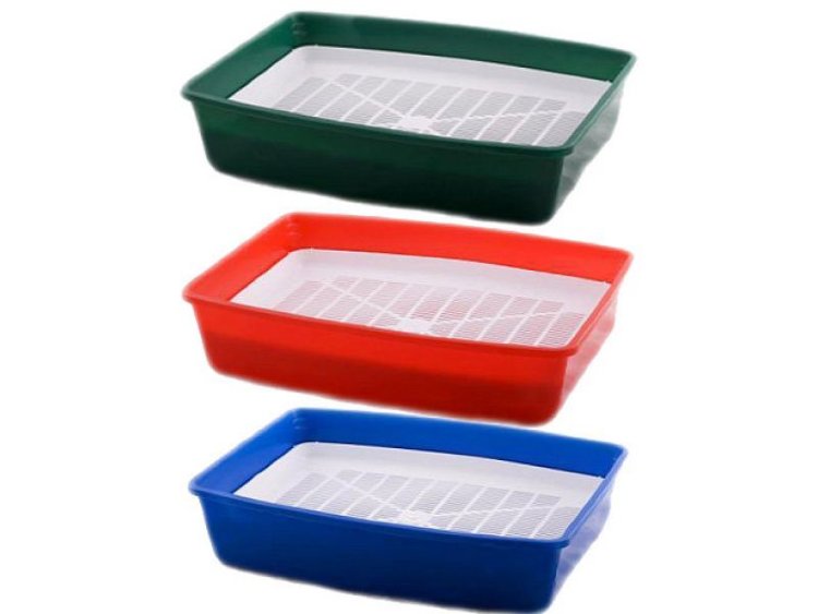 Туалет в полной комплектации - с бортом и сеткой. Предотвращает рассыпание наполнителя по полу вокруг лотка. А сетка поможет в уборке.