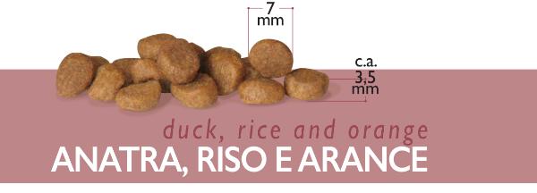 Состав: дегидратированный утиный белок (12,5%*), кукурузный белок, кукурузная мука фиоретто, рис (10%), дегидратированный куриный белок, куриный жир, гидролизированные животные белки, дегидратированный белок свинины, гороховая клетчатка, свежее мясо утки (4%) , кукуруза, дегидратированный белок лосося, пивные дрожжи, мякоть апельсина (1%), семена льна (1%), яйца, семена подорожника (0,5%), сушеные водоросли, глюкозамин, зеленогубые мидии (0,05%) . *эквивалентно 34% регидратированной утки.