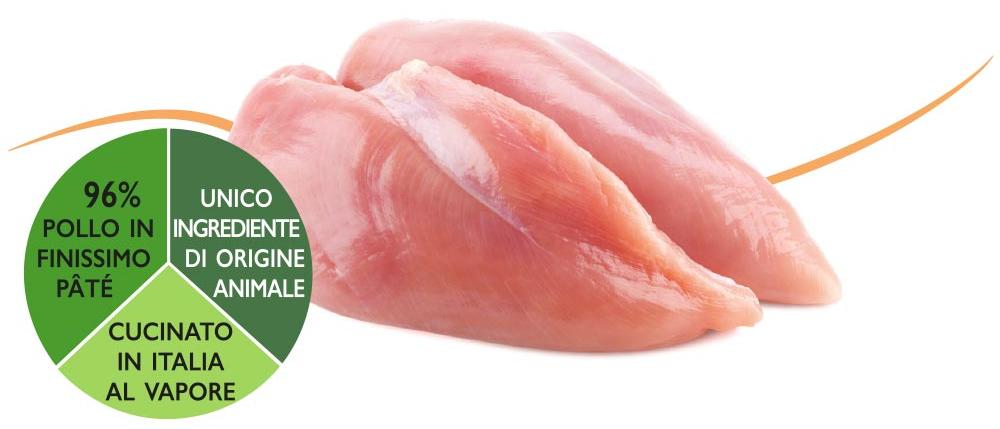 Unica Natura UNICO MONO MINI Solo Pollo in paté (курица) - паштет с курицей предназначен для взрослых собак мелких пород и щенков с двух месяцев. Полноценный корм для собак только с одним животным белком. Приготовлен по домашним рецептам на пару. Без консервантов, искусственных ароматизаторов и красителей.