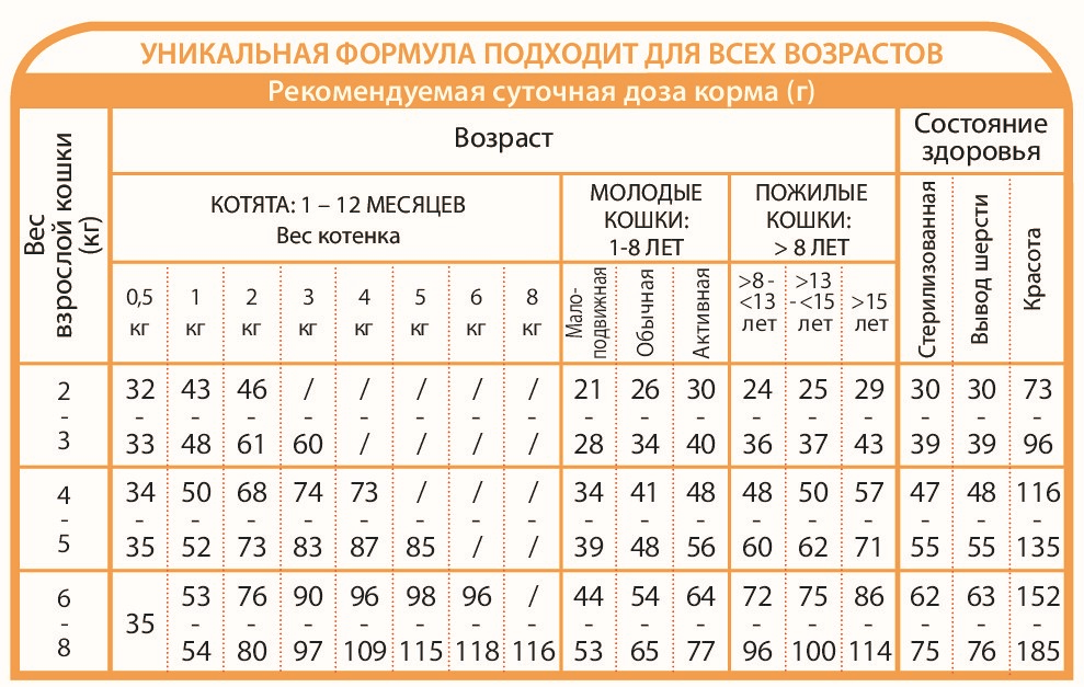 Содержит высушенные водоросли для улучшения умственного и зрительного развития растущих кошек, юкку Шидигера, которая является природным дезодорантом, уменьшающим запахи фекалий из лотка.