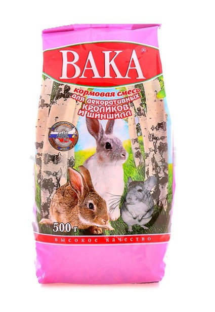 ВАКА ВК Корм для шиншилл и декоративных кроликов многокомпонентный корм специально предназначен для кормления декоративных кроликов и шиншилл. Количество поедаемого корма зависит от индивидуальных особенностей животных и их возраста.