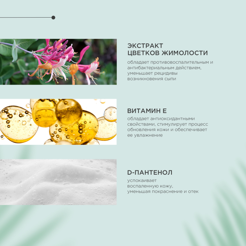 Экстракт жимолости японской, Витамин Е, Д пантенол