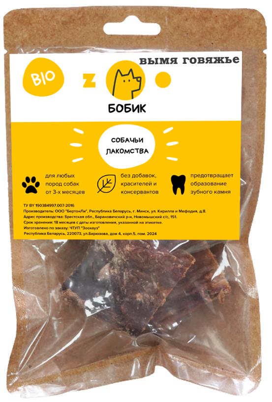 ZОО-БОБИК Лакомства для собак (вымя говяжье), 1кг